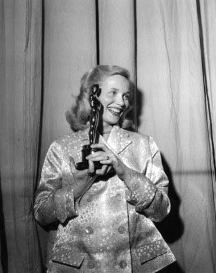 Eva Marie Saint blurting “Oh, shit” into the microphone when she won for “On the Waterfront”. Big news in the day, that cussing. Especially coming from a woman and a PG one at that. (Pregnant, but nobody said the word out loud then. It was always PG. Or, in certain circles, knocked up.)